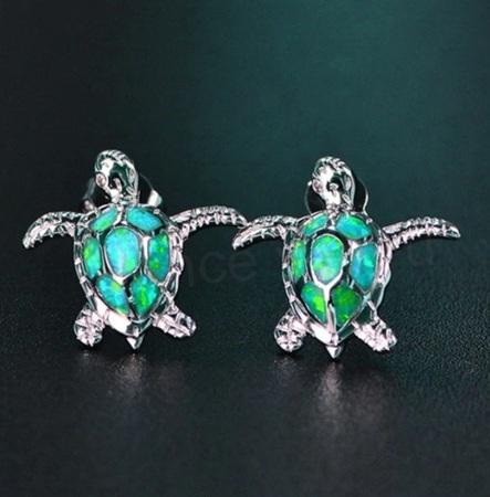 Krásné puzetové náušnice s opálem do tvaru želvy, želvičky z chirurgické oceli. Náušničky jsou vhodné i pro děti pro jejich jemný motiv, hypoalergenní. Náušničky jsou zajištěny kovovou zarážkou, vše z chirurgické oceli, zabraňují ztrátě. Na světle odraží vysoký lesk, tím jak se lesknou se krásně třpytí.