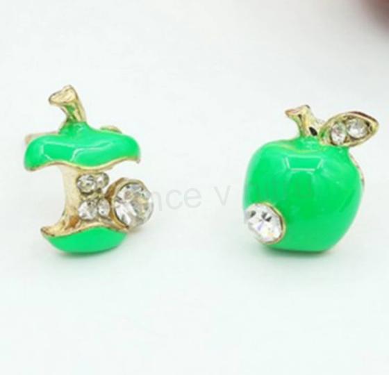 Nádherné jemné smaltované náušnice jablka, jablíčka se zirkony, jsou vhodné pro všechny věkové kategorie, hodí se na každý den nošení, zajímavě řešeno, každé jablíčko jiné, asymetrický tvar.