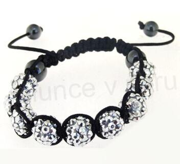 Velmi luxusní šperk. Krásný třpytící se Shamballa náramek z resin korálků, zdobený šedými korálky. Náramek je velmi vysoké kvality. Náramek je ručně tkaný z kvalitní nylonové bavlnky, černé barvy. Tento jedinečný shamballa náramek je precizně osázen zářivými resin krystaly. Na světle se výrazně třpytí. Zdobí se jím nejedna celebrita a stal se hitem letošní sezóny. Krystaly jsou odolné a vydrží Vám déle než klasická bižutérie. Na konci stahovacích šňůrek jsou 2 korálky o průměru 6 mm.
