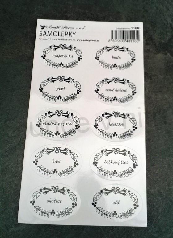 Samolepky na kořenky 10ks, různé druhy koření. Samolepky jsou v těchto barvách černá, červená, modrá, černá, zelená.