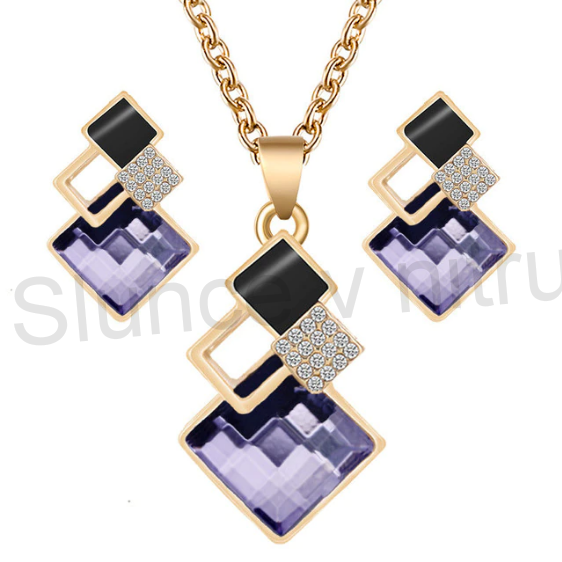 Krásná souprava, sada šperků pozlacená s Krystaly, pro dívky, či ženy v jiném provedení, ve zlaté barvě, dobré kvality. Hladké, lesklé, galvanizováno. Souprava se skladá ze 3 dilů - náušnice, řetízek, přívěšek. Nádherná kombinace vytvářejicí zajímavý efekt šperku. Náušnice jsou puzetkového typu, zajištěná silikonovou zarážkou. Je to elegantní sada modních doplňků. Hodí se všude jak na slavnosti, tak výročí. Zapinání na karabinku.