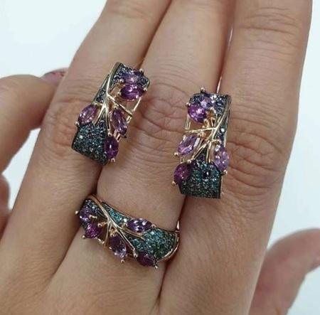Krásná souprava, sada šperků s barevnými zirkony do tvaru kytička, kytka, květina, pro dívky, či ženy v jiném provedení, v růžové barvě dobré kvality. Hladké, lesklé, ošetřeno. Souprava se skladá ze 2 dilů - náušnice, prsten. Nádherná kombinace vytvářejicí zajímavý efekt šperku. Náušnice jsou francouzkého typu. Je to elegantní sada modních doplňků. Hodí se všude jak na slavnosti, tak výročí.