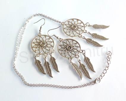 Zajimavá, souprava, sada z chirurgické oceli a slitiny Lapač snů, snář která se skladá z náhrdelníku, a náušnic. Náušnice na klasickém afroháčku, zakončeny silikonovou puzetkou. Tak aby vám padly podle vašich představ, šperky se hodí na všechny události i na běžné nošení. Krásná ruční elegantní práce, pro všechny věkové kategorie. Skvělá kombinace pro vás. Vhodné i pro svatební den.