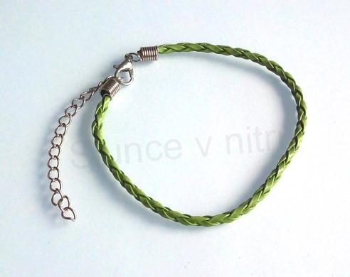 Splétaný náramkový řemínek s karabinkou, náramek se dá nosit buď jak je, nebo přidaním různých korálků s velkým průvlekem, nebo můžete zavěsit kroužek s přívěškem.