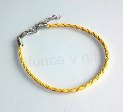 Splétaný náramkový řemínek s karabinkou, náramek se dá nosit buď jak je, nebo přidaním různých korálků s velkým průvlekem, nebo můžete zavěsit kroužek s přívěškem.