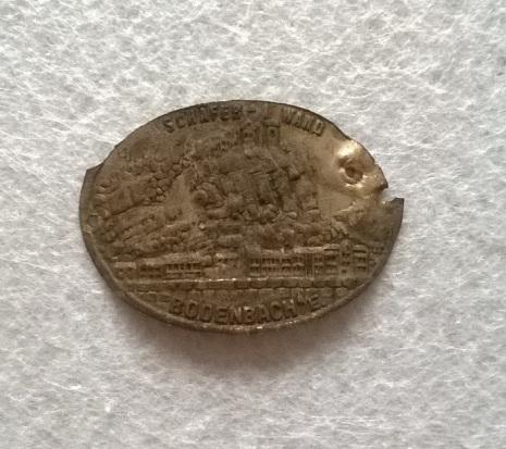 Turistický štítek na hůl s motivem Bodenbach je elegantní kovová plaketka s detailně propracovaným reliéfem krajiny a budov. Jemné zpracování dodává štítku historický a autentický vzhled, díky čemuž je ideální jako sběratelský kousek nebo suvenýr z cest.