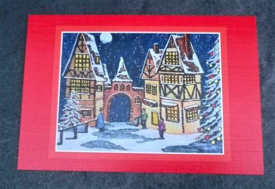 Vánoční přání, od zdravotně postižených umělců, originál namaloval ústy Lars Hoellerer. Nakladatelství UMÚN, který pomahá podporovat tělesně postižené umělce malujicích ústy a nohama.