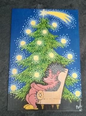 Vánoční přání, od zdravotně postižených umělců, originál namaloval nohou Lars Hoellerer. Nakladatelství UMÚN, který pomahá podporovat tělesně postižené umělce malujicích ústy a nohama.