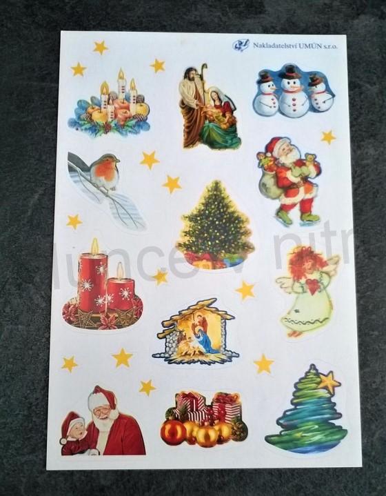 Vánoční samolepky, nálepky s vánočními motivy. Vánoční motivy, namalovala skupina autorů.