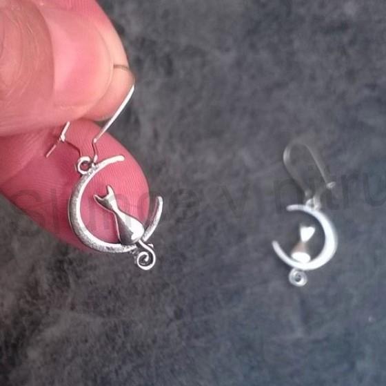 Krásné visací náušnice oboustranné do tvaru roztomilé kočičky. Náušničky jsou vhodné i pro děti pro jejich jemný motiv, hypoalergenní. Náušničky jsou na zacvakajicím afroháčku z nerez oceli a kočíčka je ze slitiny bez kadmia a olova.