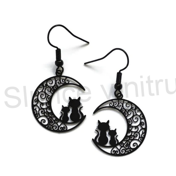 Zajimavé černé náušnice kočky, kočka na měsíci. Náušnice jsou na klasickém afroháčku, zajištěné silikonovou zarážkou, tím máte jistotu, že vám dobře drží. Náušnice jsou lehké, velmi pohodlné na nošení. Každý pár náušnic je originál.