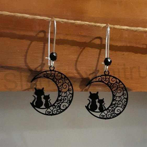 Zajimavé černé náušnice kočky. kočka na měsíci zdobené korálkem. Náušnice jsou na zacvaknutí, tím máte jistotu, že vám dobře drží. Náušnice jsou lehké, velmi pohodlné na nošení. Každý pár náušnic je originál.
