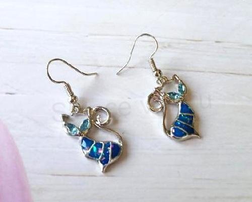Krásné visací náušnice s opálem do tvaru kočky, kočičky, kočka, kočička z chirurgické oceli. Náušničky jsou vhodné i pro děti pro jejich jemný motiv, hypoalergenní. Náušničky jsou na klasickém afroháčku, jsou zajištěny silikonovou zarážkou, zabraňují ztrátě. Na světle odraží vysoký lesk, tím jak se lesknou se krásně třpytí.