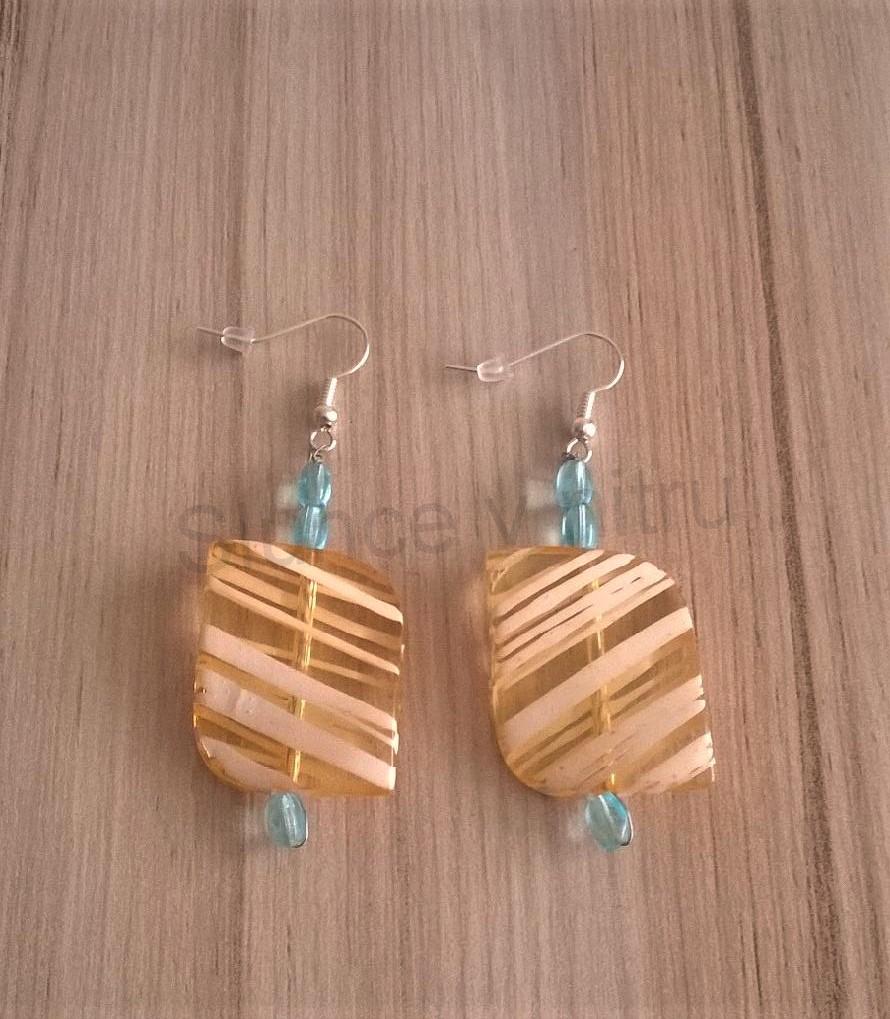 Velmi zajimavé barevné náušnice. Ozdoby na háčkách jsou ve tvaru žíhaných nepravidelných ozdob. Ozdoby jsou zpracovány do detailů. Krásna varianta v zajimavém provedení. Náušnice jsou na klasickém afroháčku, zakončený silikonovou puzetkou, lepší jištění proti ztrátě. Naušnice jsou lehké a slušivé.