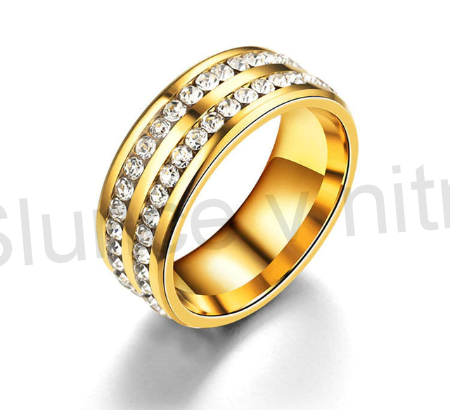 Elegantní snubní, prsten zlatý z chirurgické oceli a zirkony AAA. Tato kombinace působí velmi nadčasově. Prsten je celý zlatý z bílími kvalitními zirkony CZ - AAA. Prsten je pevný a dokonalý, není barvený. Dokonalý dárek pro všechny.