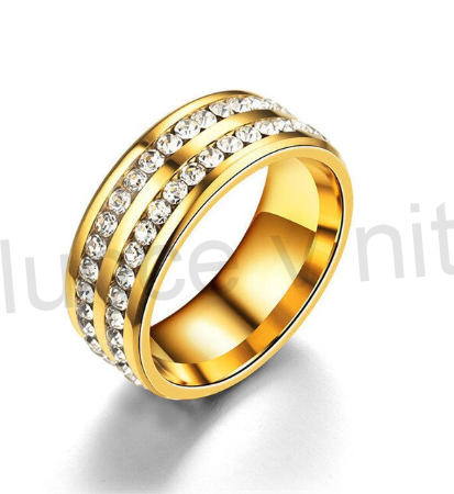 Elegantní snubní, prsten zlatý z chirurgické oceli a zirkony AAA. Tato kombinace působí velmi nadčasově. Prsten je celý zlatý z bílími kvalitními zirkony CZ - AAA. Prsten je pevný a dokonalý, není barvený. Dokonalý dárek pro všechny.