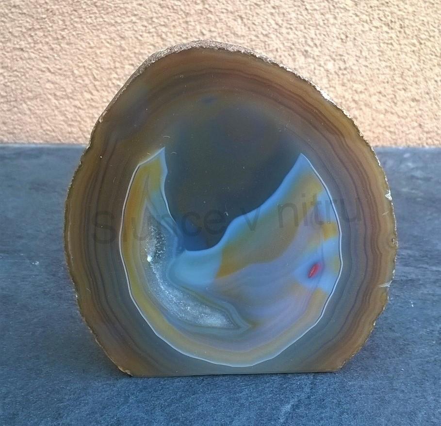 Pecka Achátový chleba řezaný, leštěný. Vhodné jako těžítka, dekorativní předměty. Lze použít jako ozdobu interiéru, nebo jako okrasné kameny do zahrad a exteriéru.