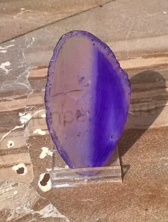 Achát plátek je průsvitný oboustranně leštěný, jeho přírodní kresba nejlépe vynikne při pohledu proti světlu. Lze použít jako ozdobu interiéru, nebo jako okrasné kameny do zahrad, exteriéru a domovů.