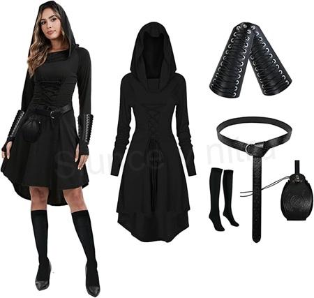 Gotické šaty jsou super měkké, prodyšné a pohodlné, snadno se nosí a sundávají, což vám nabízí vynikající zážitek. Středověké dámské oblečení s následujícími doplňky, 1x pár černých chráničů paží, 1 x pár punčoch po kolena, 1 x korzetový pásek, 2 x sponky na zástěru - opasek, 1 x retro sáček, můžete je volně kombinovat, abyste doplnili různé druhy oblečení. Super měkké, prodyšné a pohodlné, snadno se nosí a sundávají, což vám nabízí vynikající zážitek. Jedná se o úzký a štíhlý design, který optimálně uplatní vaši skvělou postavu. Pokud dáváte přednost volnému střihu. erfektní pro renesanční festivaly, steampunkové festivaly, viktoriánské akce, středověké svatby, karneval, masopust, Halloween, divadelní představení, pirátské kostýmy, tématické večírky elfů, festivaly nebo každodenní použití, k různým teplotám a každému ročnímu období (jaro, léto, podzim a zima).