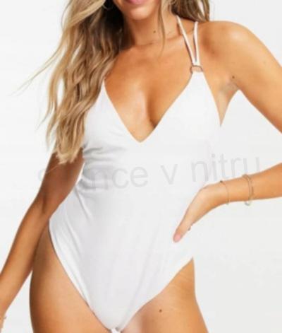 - Dámské jednodílné plavky Boohoo – bílé, výstřih do V (46 / 2XL–3XL) (K432)