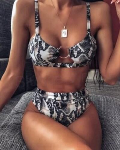 Dámské dvoudílné plavky XTBFOOJ – hadí vzor, vysoký pas (S / EU 32–34) (K427)