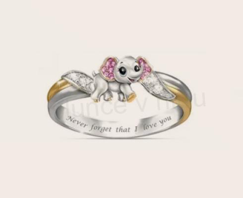 Romantický jemný prsten s motivem roztomilého slůněte, slon, sloník, zdobený zirkony. Prsten nese nápis ve vnitř prstenu Nikdy nezapomenu, že tě miluji. Je to originální dárek jak pro ženy, tak pro dívky. Nikoho neurazíte, pokud se rozhodnete někoho touto maličkostí podarovat. Prsten vyjadřuje lásku, jemnost, přitom krásu. Je prostě dokonalý, přitom jedinečný.