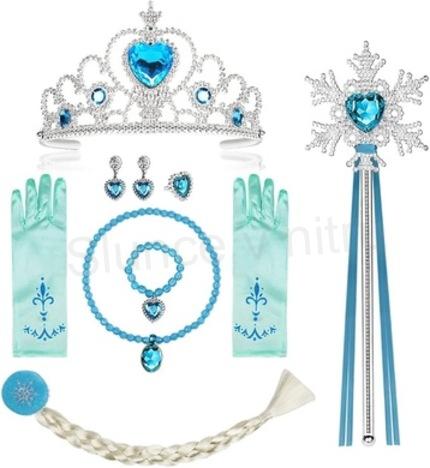 Kostým pro princeznu Elsa, ledová královna. sněhová královna - příslušenství - doplňky.Příslušenství se skládá - 1x korunka Elsa, 1x paruka, 1x kouzelná hůlka, 1x rukavice, 1x náramek, 1x náhrdelník, 1x prsten a 1x náušnice. Vysoce kvalitní materiály: Bling koruna s modrými akcentovými štrasovými kamínky, udělejte ze svých dívek princeznu. Sada příslušenství Elsa se výborně hodí na narozeniny, neobvyklé večírky, školní představení, volnočasové parkování a festivaly. Tato sada doplňků pro princezničky je dobře zpracovaná a hodí se dobře jako nádherný doplněk, abyste dodali okouzlující a krásnější vzhled.
