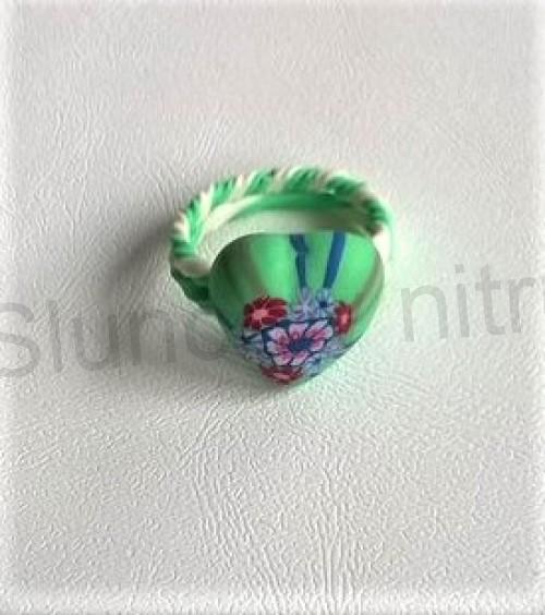 Krásný jemný dětský, dívčí zdobený prsten srdíčkový, vyrobený z polymerové hmoty. Prsten je velmi lehoučky, dokonalé tvarovaní. Zdravý neškodný, vhodný i pro alergitiky. Prsten lze i trochu více přizpůsobit na prst.