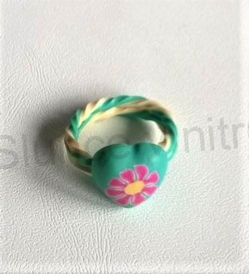 Krásný jemný dětský, dívčí zdobený prsten srdíčkový, vyrobený z polymerové hmoty. Prsten je velmi lehoučky, dokonalé tvarovaní. Zdravý neškodný, vhodný i pro alergitiky. Prsten lze i trochu více přizpůsobit na prst.