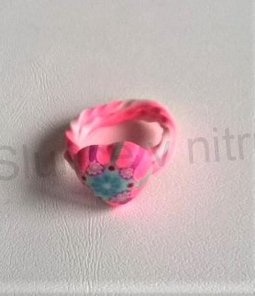 Krásný jemný dětský, dívčí zdobený prsten srdíčkový, vyrobený z polymerové hmoty. Prsten je velmi lehoučky, dokonalé tvarovaní. Zdravý neškodný, vhodný i pro alergitiky. Prsten lze i trochu více přizpůsobit na prst.