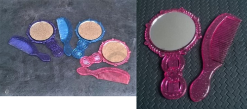 Divčí sada, souprava, která obsahuje funkční hřebínek a zrcátko určitě potěší kdejakou slečnu. Sada je v průhledném obalu a dá se i zavěsit na háček.