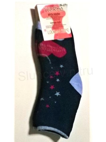 Dívčí teplé bavlněné Thermo ponožky velikost 26 - 27 modré (W161)