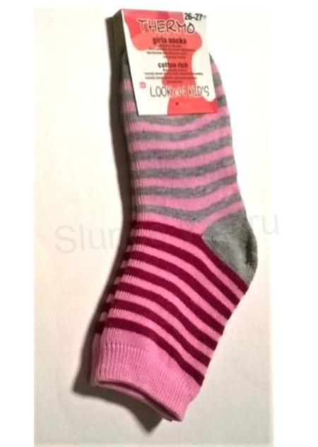 Dívčí teplé bavlněné Thermo ponožky velikost 26 - 27 růžové barevné (W161)