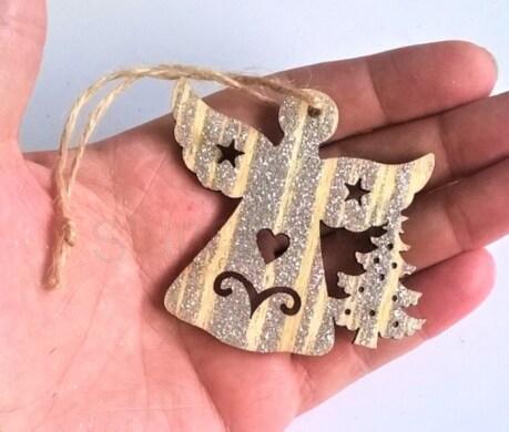 Dřevěná vánoční ozdoba andílek s glitry (H181)skladem 5 ks38,00 Kč/ ks