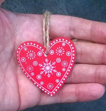 - Dřevěná vánoční ozdoba srdíčko - červená (H188)