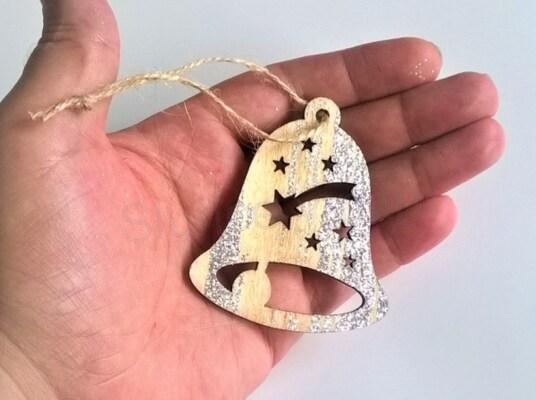 - Dřevěná vánoční ozdoba zvoneček s glitry (H180)