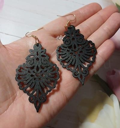 - Dřevěné ozdobné náušnice – černé (BB970)