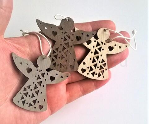 Tradiční vánoční ozdoby v podobě dřevěných andílků, andílek, anděl, na pověšení, dobře doplní váš stromeček nebo vyzdobí větvičky. Slouží také jako talisman pro štěstí. Ručně dělaný s láskou pro Vás. Andílek má bílou voskovanou šňůrku na zavěšení.