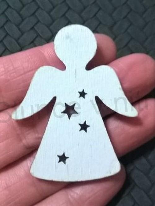 Dřevěný, dekorační výřez anděl, andílek, pro zdobení věnců, vánočních stromečků, kreativních výrobků a dalších dekorací. Výřezky je možno i dobarvit, vhodné na motivaci pro děti. Jednotlivé dílky byly vytvořeny v grafickém programu a následně vyřezávány pomocí gravírovacího laseru do uplných detailů. Výřez je ze silnějšího dřeva.