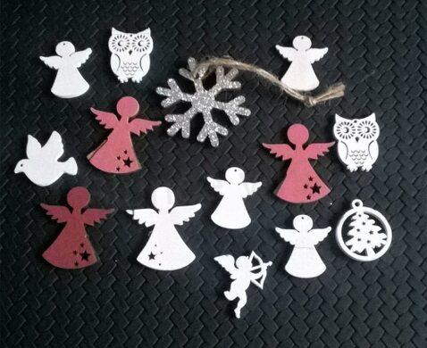 Dřevěný, dekorační výřezy, zvířátka, různé tvary, pro zdobení věnců, vánočních stromečků, kreativních výrobků a dalších dekorací. Výřezky je možno i dobarvit, vhodné na motivaci pro děti. Jednotlivé dílky byly vytvořeny v grafickém programu a následně vyřezávány pomocí gravírovacího laseru do uplných detailů. Výřezy mají menší vadu.