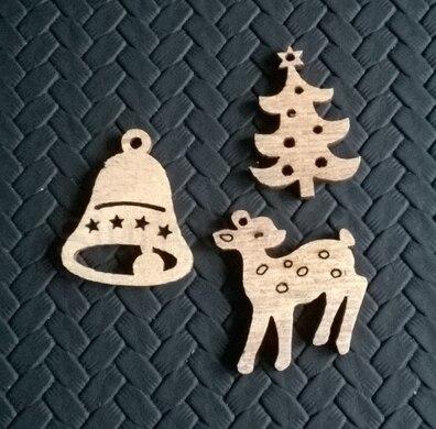 Dřevěné výřezy - vánoční ozdoby, přívěsky 3 kusy v balení (V98)skladem13,50 Kč/ balení