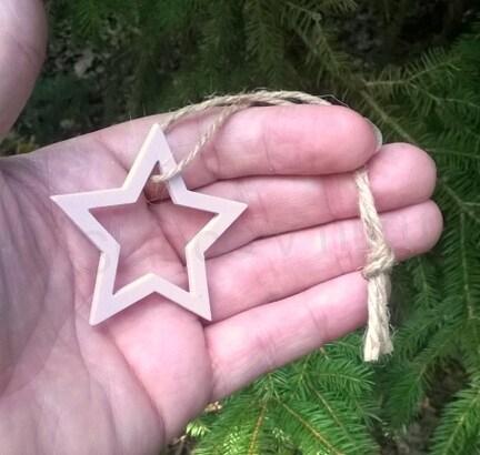 Dřevěný závěsný, dekorační výřez ve tvaru vánoční hvězdička. Výřez si můžete zavěsit všude kam budete chtít i do dětského pokoje, pro zdobení věnců, vánočních stromečků, kreativních výrobků a dalších dekorací.
