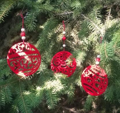 - Dřevěné výřezy - závěsná ozdoba vánoční koule červená (V142)