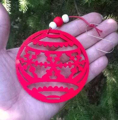 - Dřevěné výřezy - závěsná ozdoba vánoční koule červená č. 1 (V142)