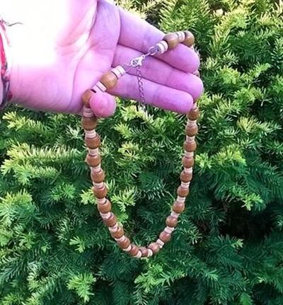- Materiál: přírodní dřevěné korálky, ošetřený kov