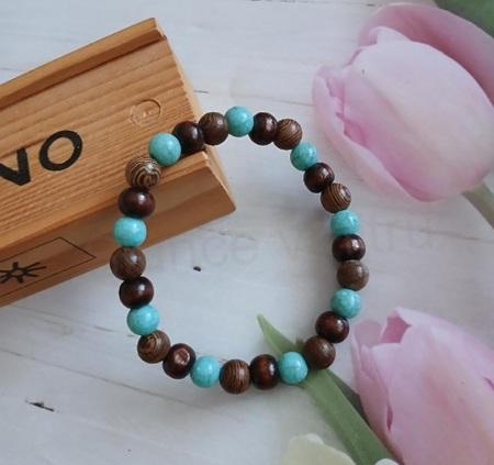 Dřevěný náramek s tyrkysem, korálky 8,2 mm (BC713)skladem 2 kus119,00 Kč/ kus