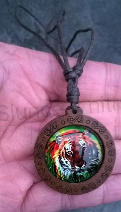 - Provázkový dřevěný náhrdelník s kabošonem tygr (BD600)
