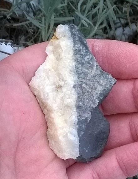 Jedná se o malou velikost drúzy v barvě bílého lesklého kalcitu.