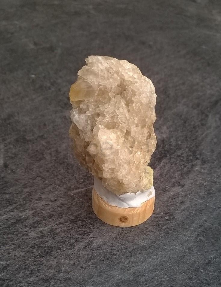 Malí kousek kalcitu žlutého - medového na dřevěném podstavci