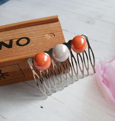 - Hřebínek, hřeben do vlasů, oranžové a bílé pokovené perly 14 mm (H783)